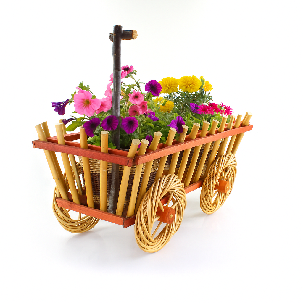 Prútený fúrik je krásnym doplnkom do vašej záhrady alebo na skalku.