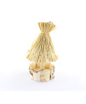 Toto krmítko je vyrobené z brezového dreva a má rustikálny, ručne robený vzhľad. Jeho strecha je zhotovená zo zväzku slamy, ktorá chráni krmivo pred dažďom a snehom, a spodná časť je vytvorená z brezových kúskov dreva, čo dodáva krmítku prirodzený vzhľad a stabilitu.