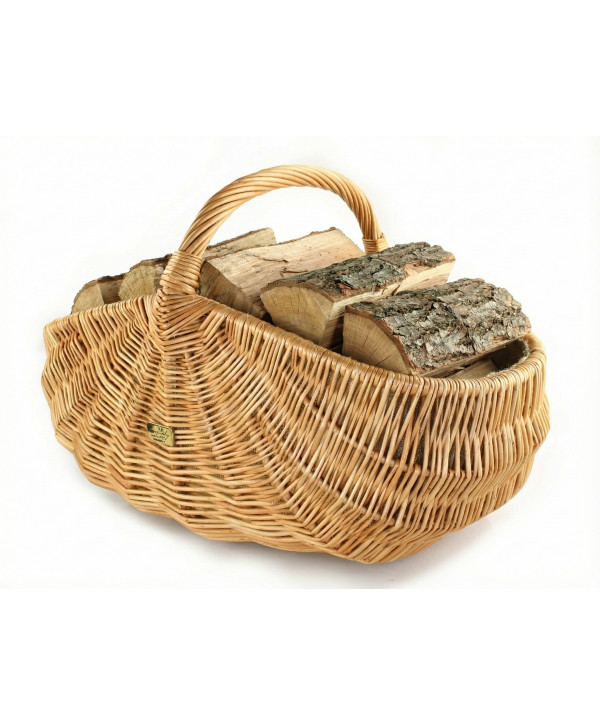 Ergonomická a pevná rukoväť: Masívna, do oblúka tvarovaná rukoväť je pevne vpletená do konštrukcie koša. Je navrhnutá tak, aby sa pohodlne držala v ruke a bezpečne uniesla plný náklad dreva pri prenose z drevárne až ku krbu.